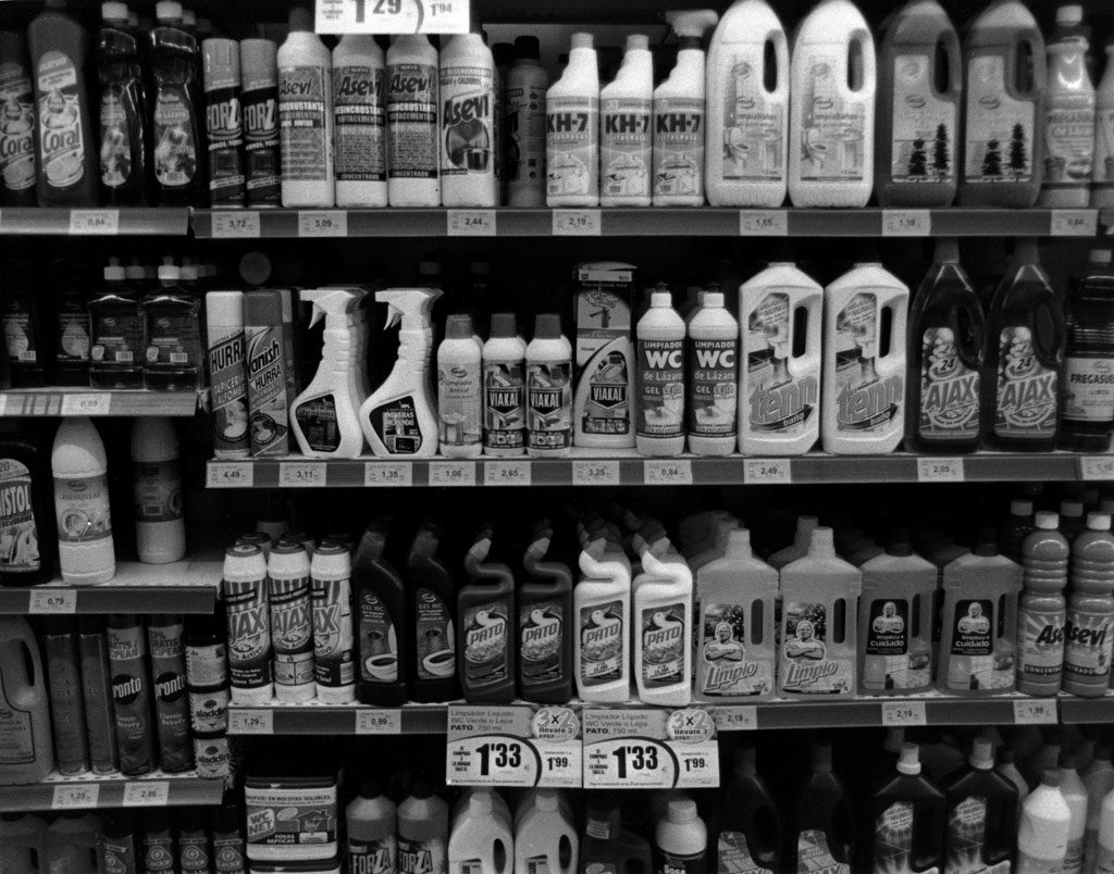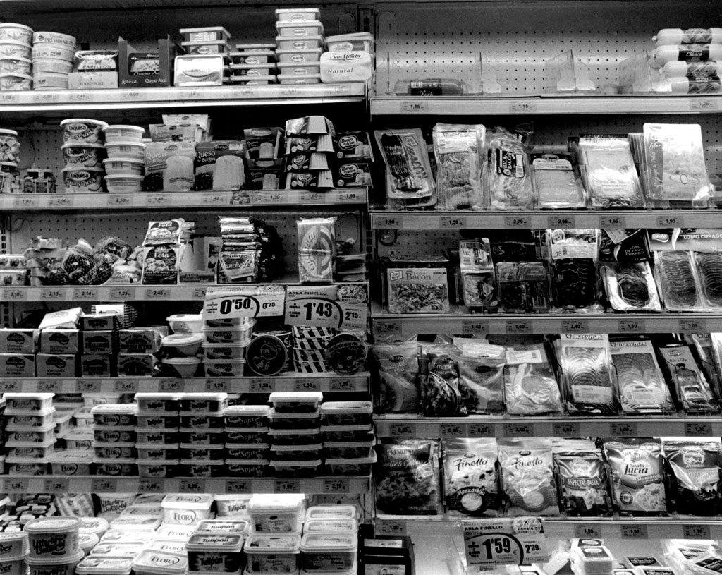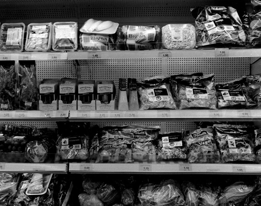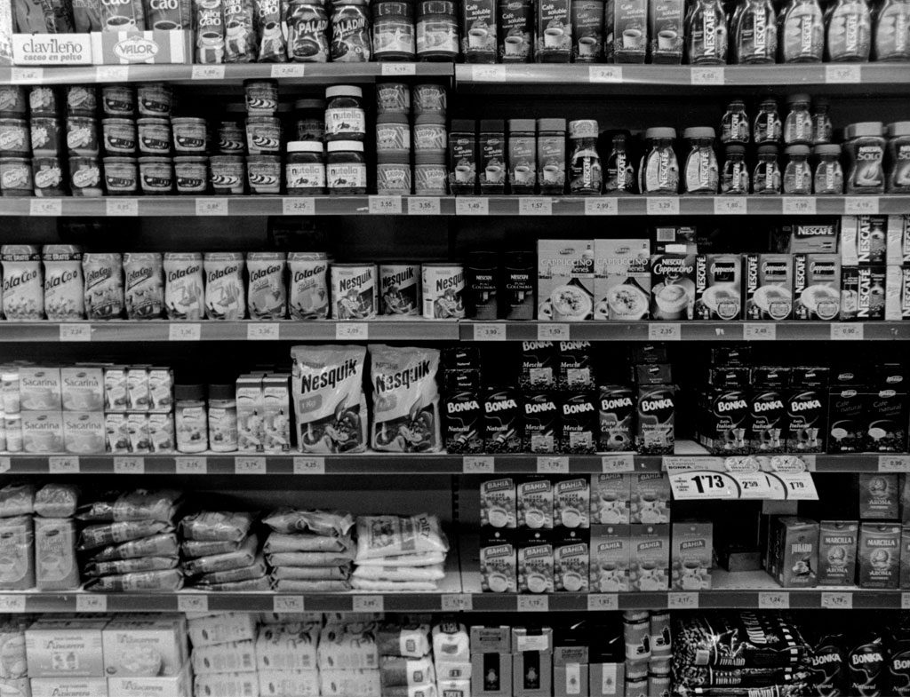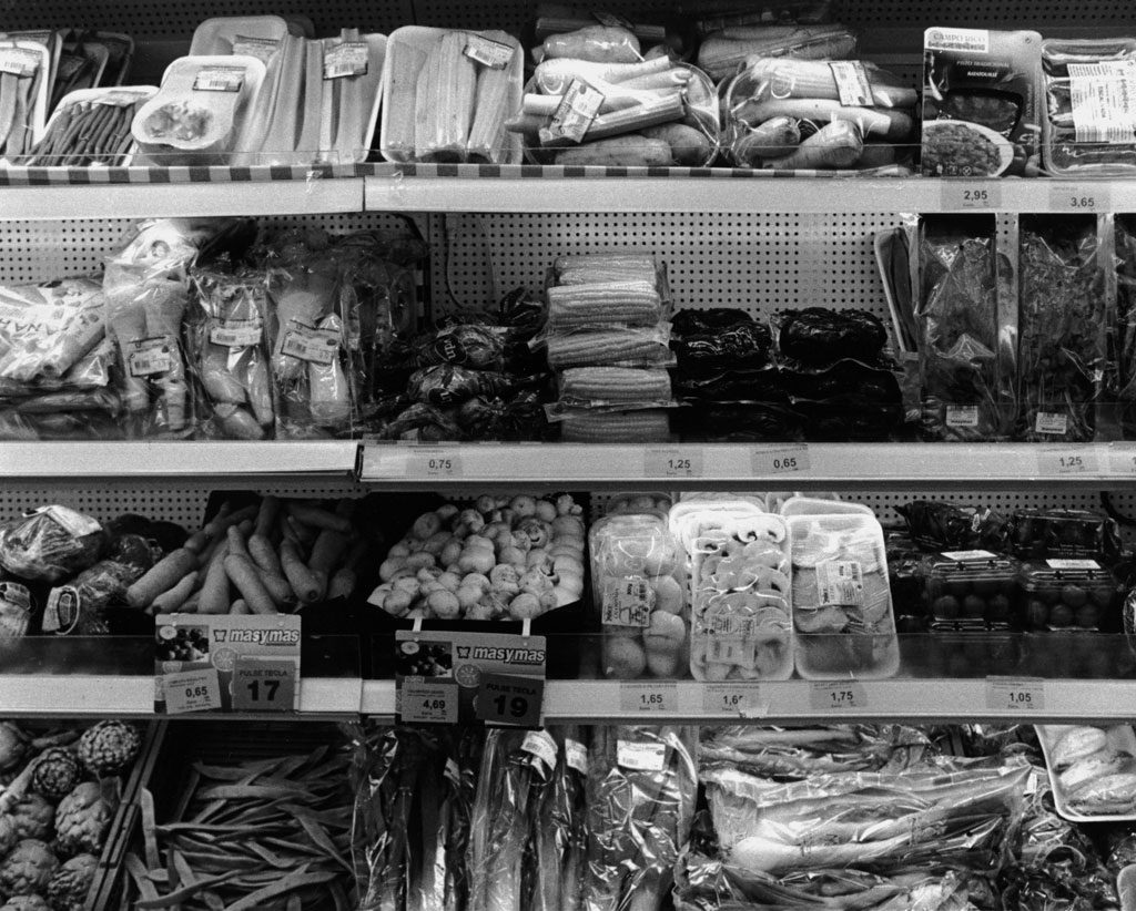 Los supermercados son el resultado de meticulosos estudios sociológicos y de mercado, nada está donde está por casualidad, infinidad de marcas, productos y colores, reclamos con los que seducir al consumidor, al sujeto de estudio. ¿Podríamos definir a una sociedad basándonos en los productos que venden sus supermercados? Si los despojamos de color, son solo envases, contenedores con distintas formas. Vivimos inmersos en un sistema de envases, plástico y precios.